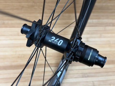 Radsatz. Die 30 mm breite Carbon-Felgen bieten dir die Präzision, welche nötig ist, um selbst die kniffeligste Linie sicher zu treffen, während eine zuverlässige 240 Nabe mit dem neuen RATCHET EXP Freilaufmechanismus die Pedalkraft satt auf die Strecke bringt. Zusammengehalten werden die Komponenten von leistungsfähigen und gewichtsoptimierten Competition Race straightpull Speichen.
