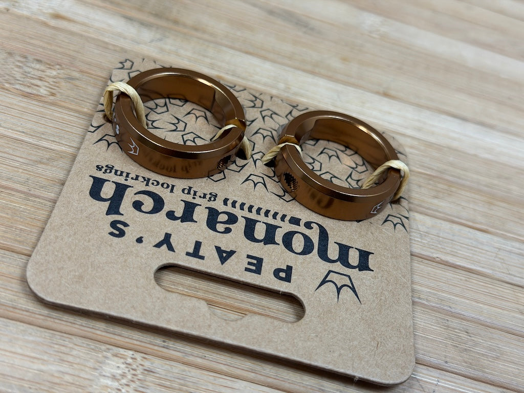 Lasergravierte Logos und ein ausgerichtetes Peaty's-Logo am Griffende helfen dir, den Griffversatz richtig zu positionieren. Gleichzeitig rockst du die Trails im unverkennbaren Peaty's Style.