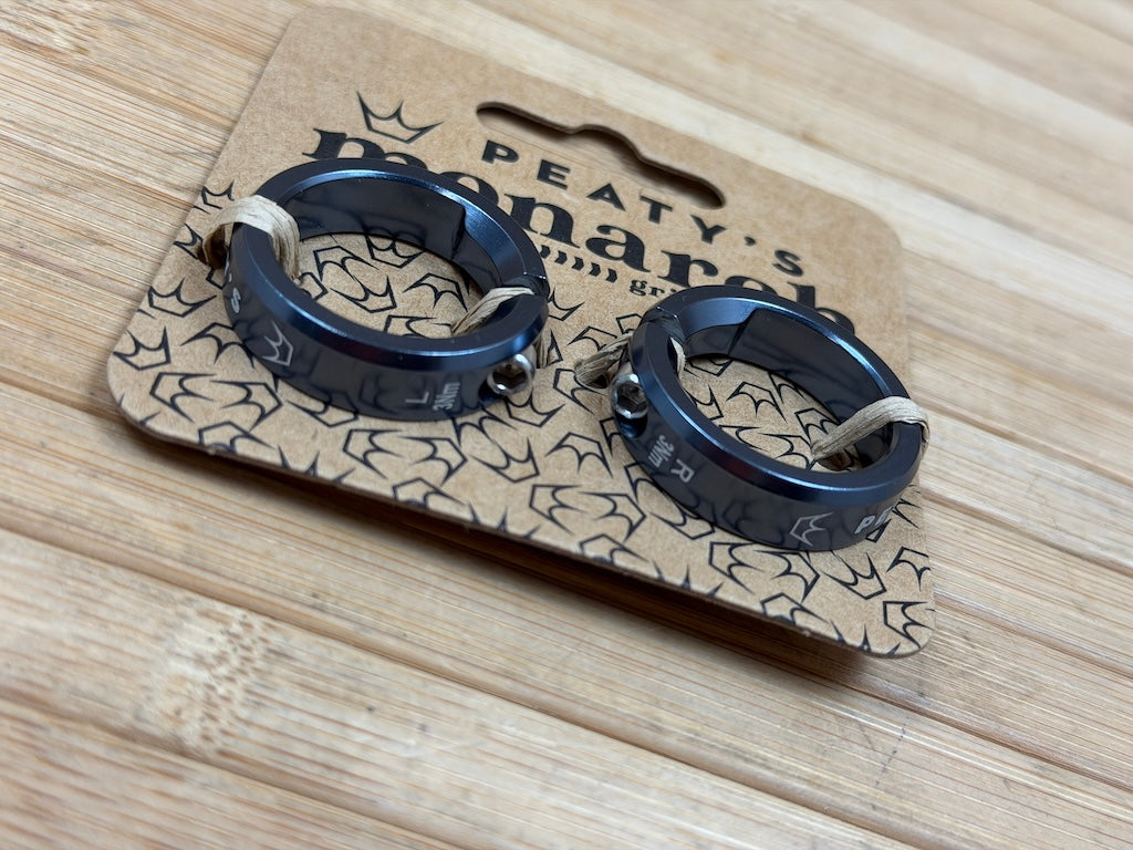 Lasergravierte Logos und ein ausgerichtetes Peaty's-Logo am Griffende helfen dir, den Griffversatz richtig zu positionieren. Gleichzeitig rockst du die Trails im unverkennbaren Peaty's Style.