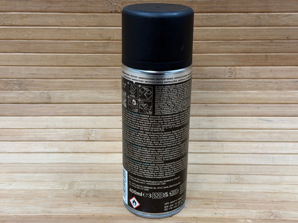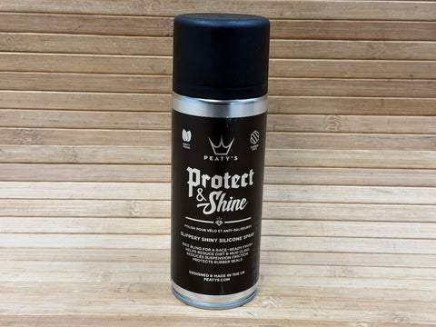 Sieht dein geliebtes Bike nach einer harten, schmutzigen Fahrt trist und müde aus? Peaty's Schutz und Glanz ist die Rettung! Sprühe auf Lacke, Metalle, Kunststoffe oder Carbonteile, um das Rennpferd wieder in ein renntaugliches Finish zu bringen. Sprühe sparsam auf deine Standrohre und Dichtungen, um die Reibung zu reduzieren, die Wellen glatt zu halten und die Gummis vor vorzeitigem Austrocknen zu schützen. Durch das großzügige Auftragen auf den Rahmen entsteht eine schützende Silikonschicht, die die Verschmutzungen reduziert und die zukünftige Reinigung erleichtert - weniger Reinigungsaufwand, mehr Fahrzeit! Anweisungen: Vor Gebrauch gründlich schütteln. Aus einem Abstand von 10 - 20 cm auf eine saubere, trockene Oberfläche auftragen. Die Oberfläche mit einem weichen Tuch abwischen und dann polieren, bis sie glänzt. Um Übersprühungen und Bremsverunreinigungen zu vermeiden, direkt auf ein Tuch in sicherem Abstand auftragen und auf die Oberfläche übertragen. Achtung: Nicht auf Bremskomponenten und Reifenlaufflächen anwenden.