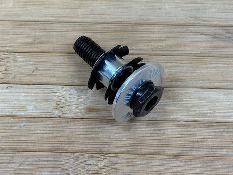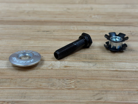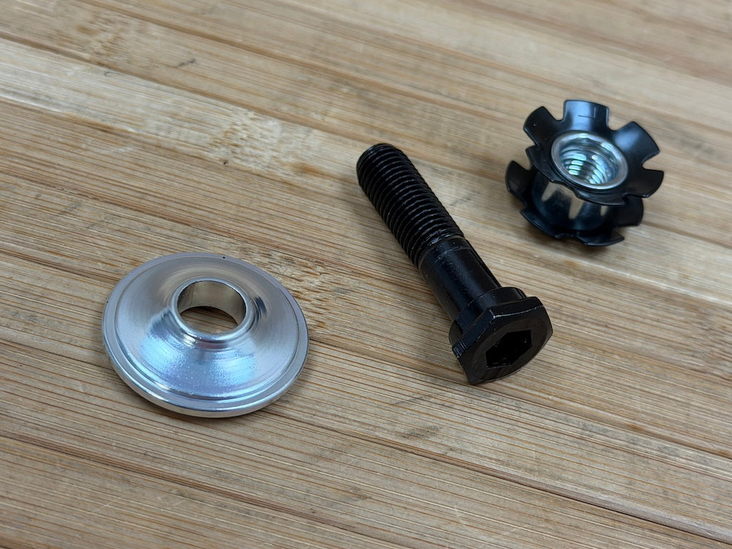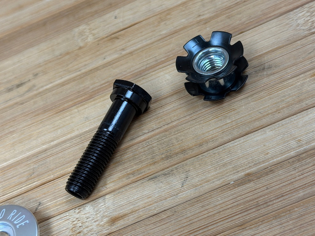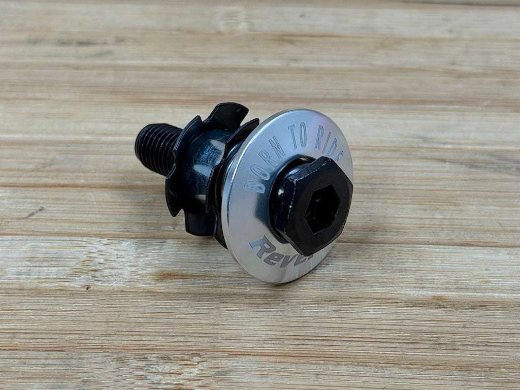 Das Set beinhaltet eine Hohlschraube inkl. Steuerrohrkralle und eine lasergravierte "Born to Ride" Aluminium TopCap.
