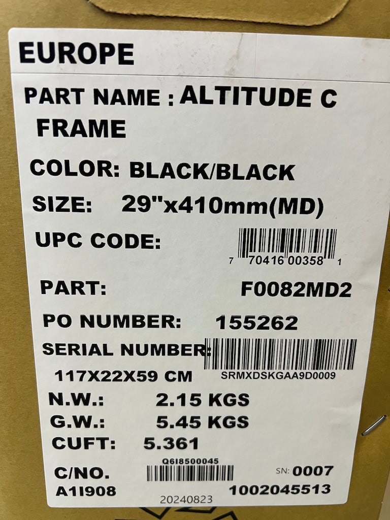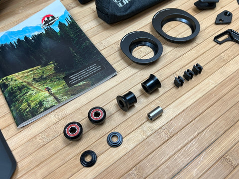 Lieferumfang: Rahmen, Roller Bearing für den Dämpfer, Handbuch, Kleinteile, 2x Rahmenschoner, Headset mit verschiedenen Cups, 2x Tasche